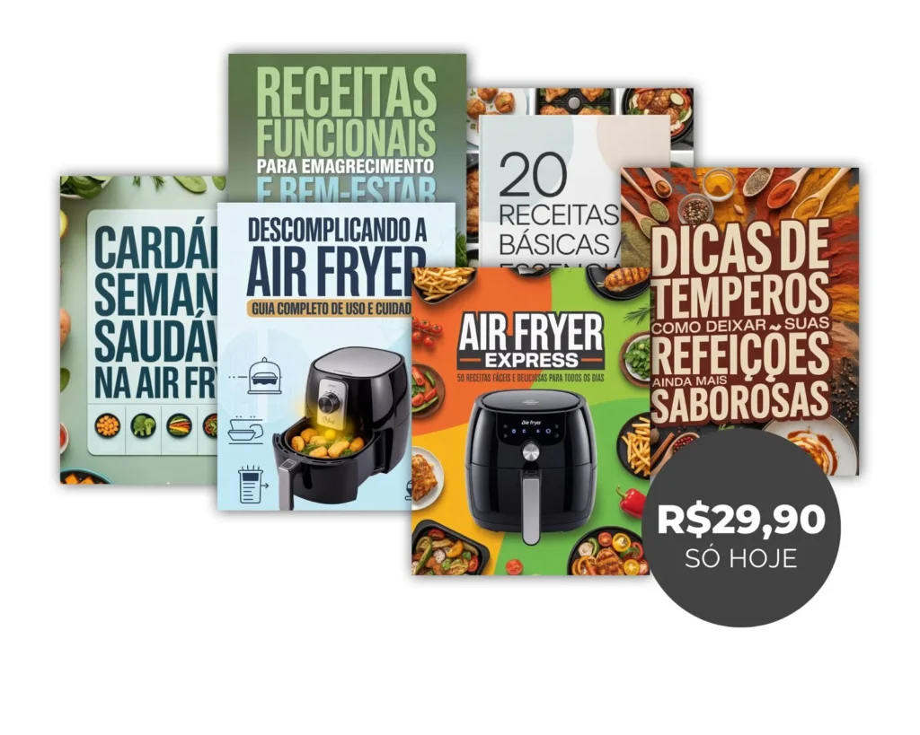 Além disso, o “Air Fryer Express” vem com 5 bônus exclusivos que complementam o eBook principal: